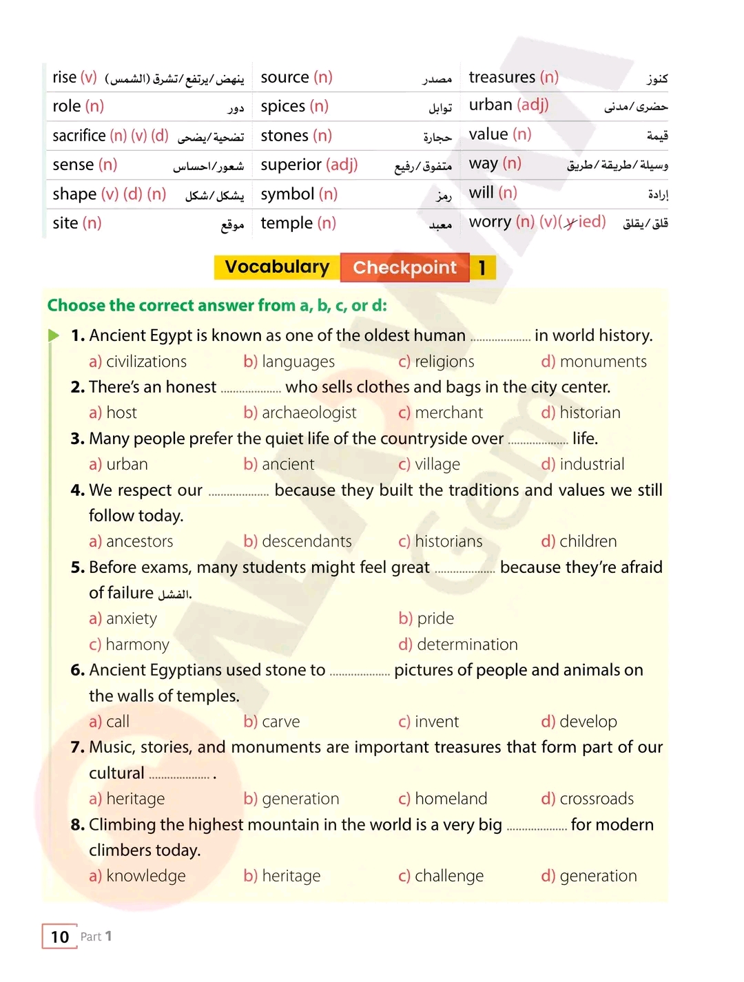 كل وحدة تحتوي على كلمات جديدة مرتبطة بموضوع الدرس، مع تدريبات تساعد على استخدامها في سياق صحيح.
